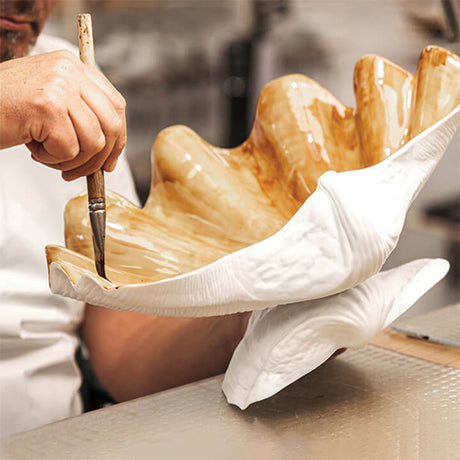 Inspired by the timeless beauty of the sea, this neo-classical motif is meticulously handcrafted from fine porcelain, sculpted in bisque and hand painted in 24k gold to echo the gentle waves of the Mediterranean.
