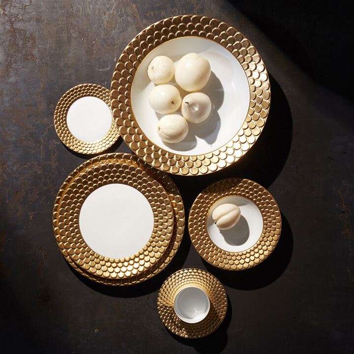 The Aegean dinnerware collection is introduced, inspired by Mediterranean sea, ancient forms, and the poetry of the table. Today, available in white, gold, and platinum, it stands as L’OBJET’s longest-running dinnerware collection and a pure expression of timeless design.