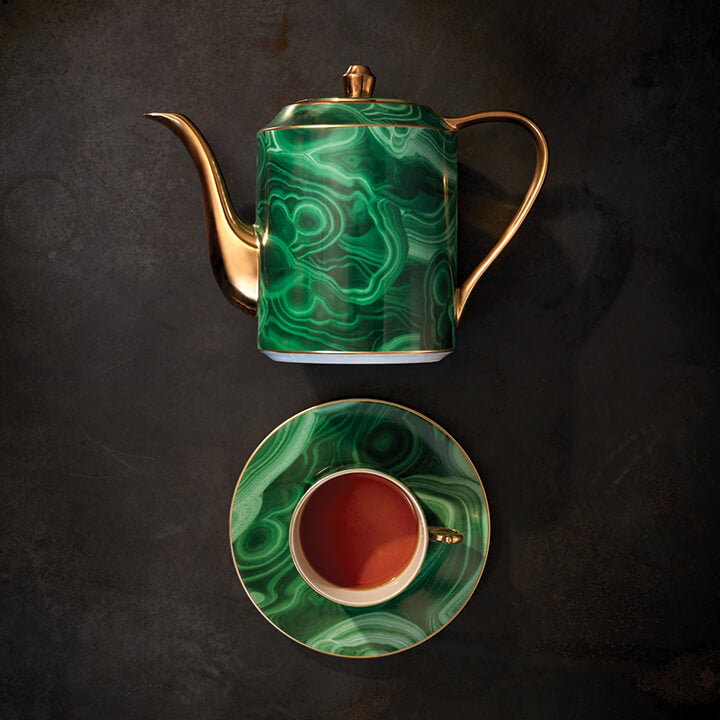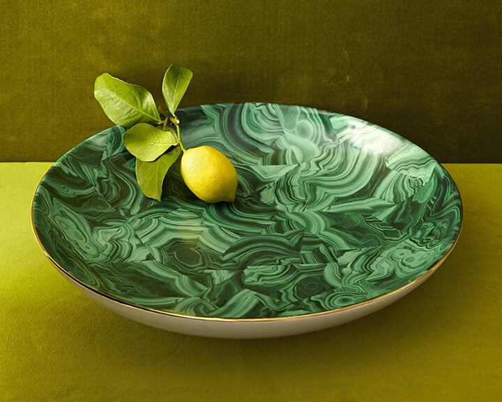 The Malachite collection debuts as part of the Cabinet of Curiosities. With its impactful green motif, it quickly became a signature of the House. Still a bestseller today, Malachite embodies L’OBJET’s belief that good design transcends time and trends.
