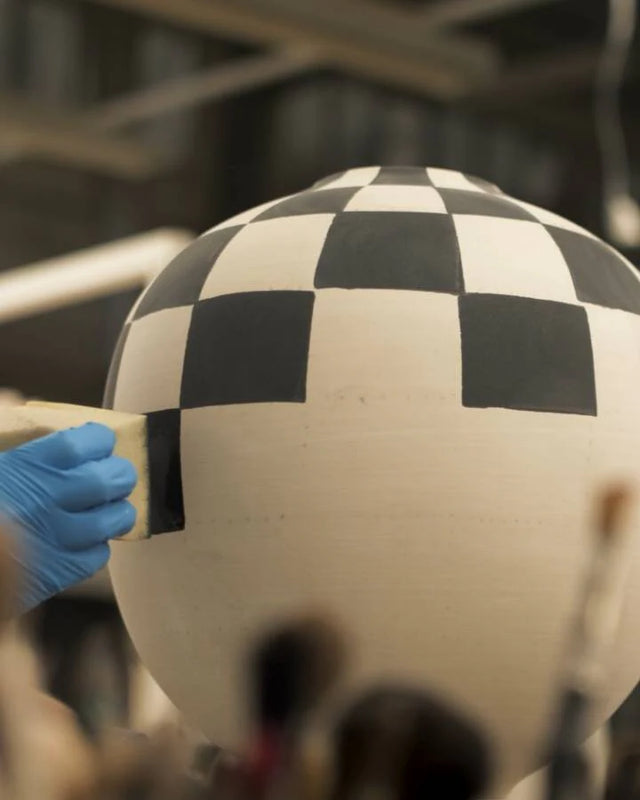 From the French term for "checkerboard", this iconic graphic pattern is adapted and re-interpreted. These porcelain vases are hand painted in a rich indigo glaze by skilled artisans out of our Portuguese atelier.