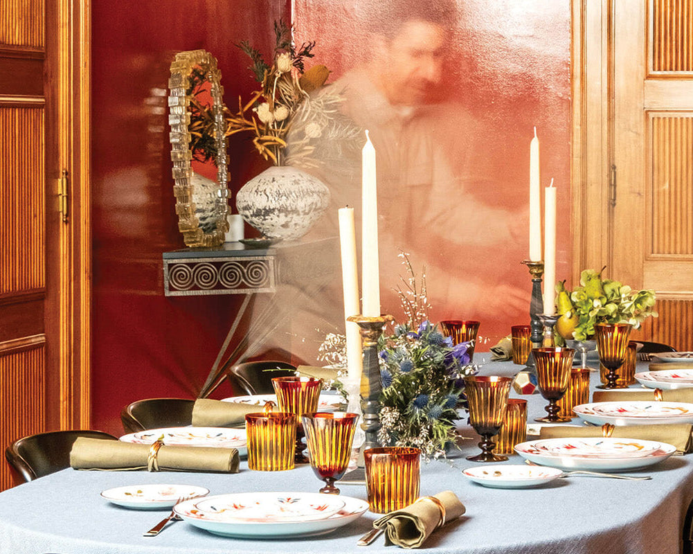 Setting a table with the Grand Tour collection is an act of storytelling. In the hands of Elad, the collection is composed alongside other L’OBJET dinnerware and table accents — mixed, juxtaposed, and thoughtfully arranged — creating a table that feels personal, worldly, and deeply rooted in craftsmanship.