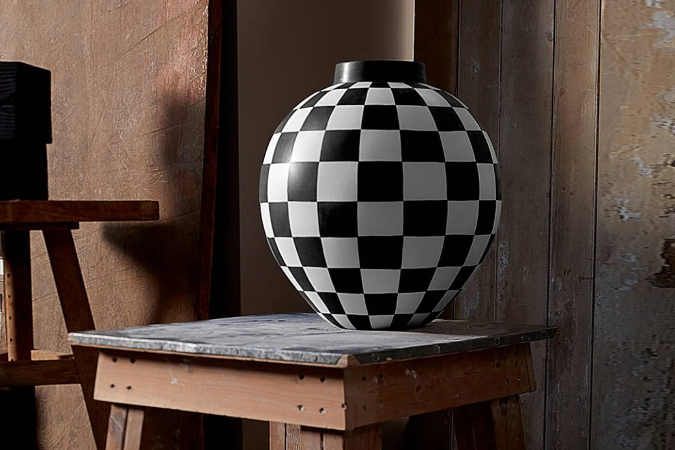From the French term for "checkerboard", this iconic graphic pattern is adapted and re-interpreted. These porcelain vases are hand painted in a rich indigo glaze by skilled artisans out of our Portuguese atelier.